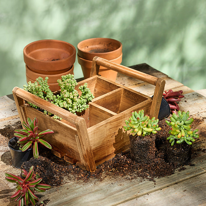 Crafted from durable timber, the Timber Trug Caddy combines rustic charm with practical design with four compartments, dual handles and slat base. Its sturdy build makes it perfect for carrying gardening tools, crafts, or household utensils, keeping everything organised and within reach. Lightweight yet robust, this caddy is an ideal companion for both indoor and outdoor tasks, enhancing your efficiency with a touch of natural style.
